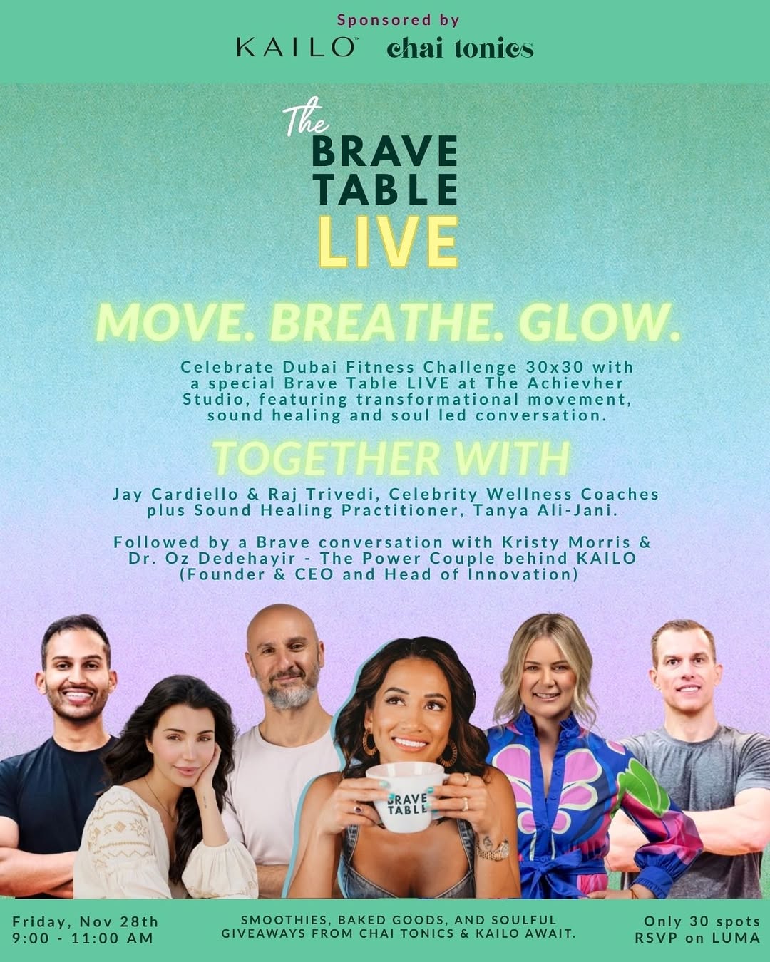 Dr. Neeta Bhushan added, “Brave Table Live has always been about meaningful conversations and shared humanity. Coming together with KAILO allows us to expand that mission through movement, meditation and rituals that open people up to deeper